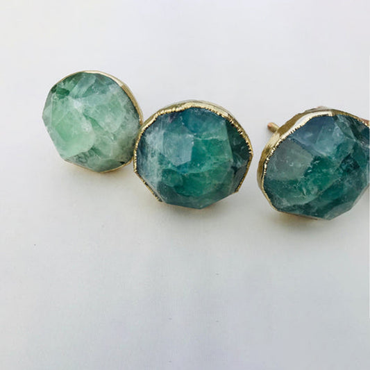 Set of 4 Large Faceted Green Fluorite/Gemstone/Agate Classic Vintage Finish Cabinet Drawer Pull Wardrobe Dresser Interior Decorative Handle