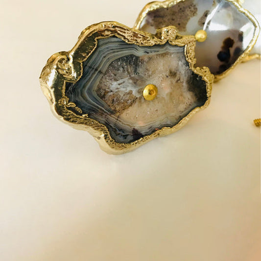 Set of 6 Natural Grey Agate Classic Vintage Finish Cabinet Drawer Pull Wardrobe Dresser Interior Decorative Handle