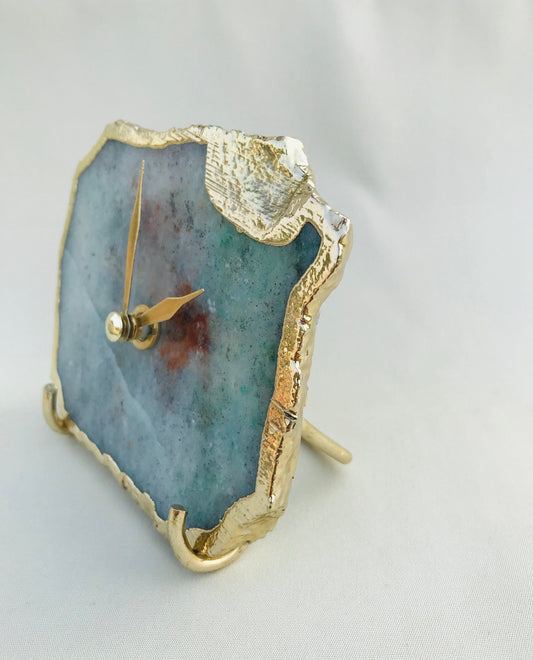 Grey Green Aventurine Agate Desk/Wall Clock/Personalised Momento
