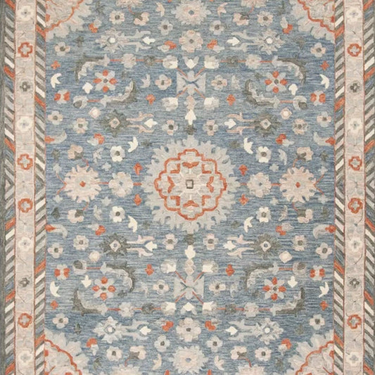 Bahar - Handcrafted Rug/Carpet | Pure New Zealand Wool | Hand Tufted | High Pile | High Density | Yarn Dyed | Blue, Grey, Orange, Red