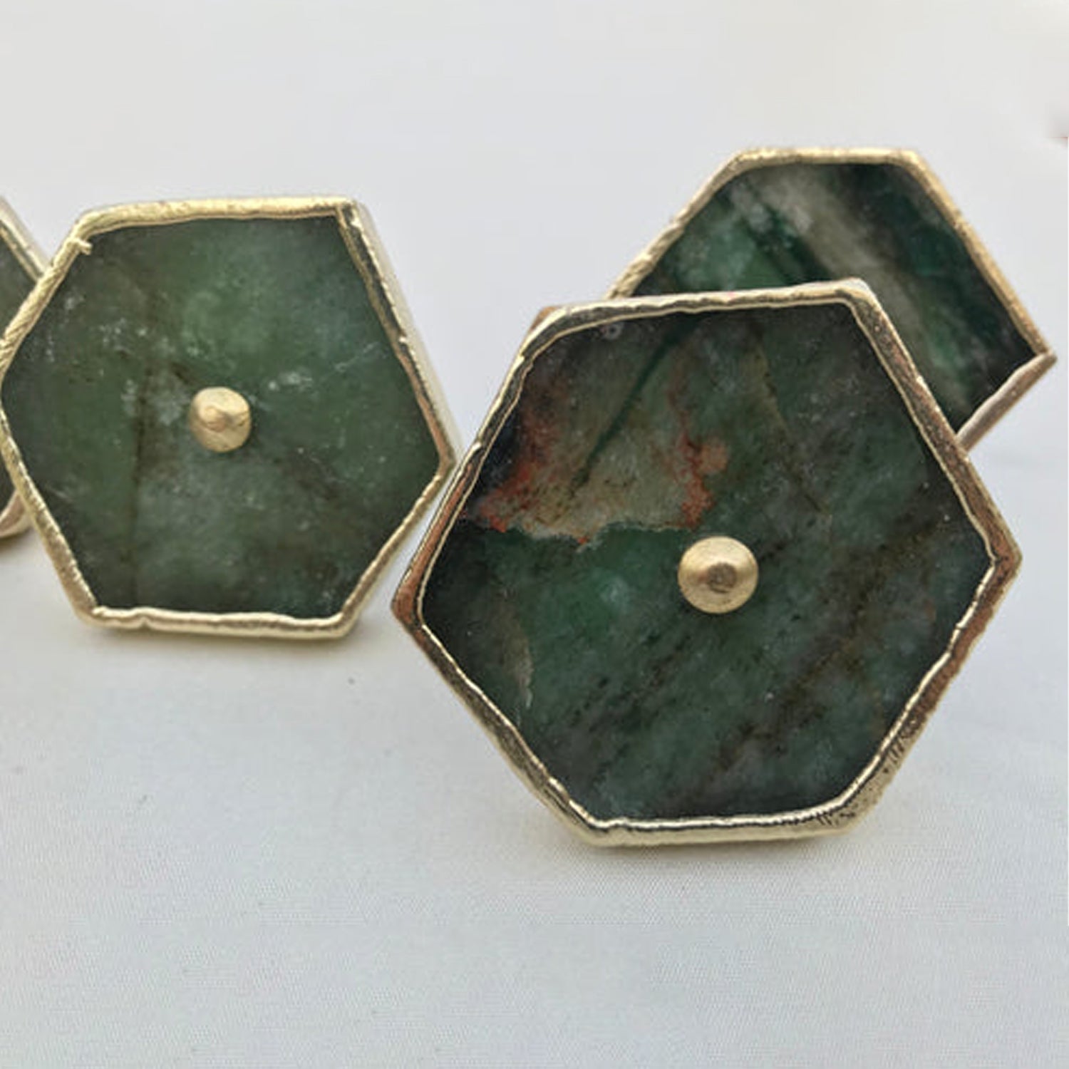 Set of 6 Sage Green Hexagon Agate Classic Vintage Finish Cabinet Drawer Pull Wardrobe Dresser Interior Decorative Handle
