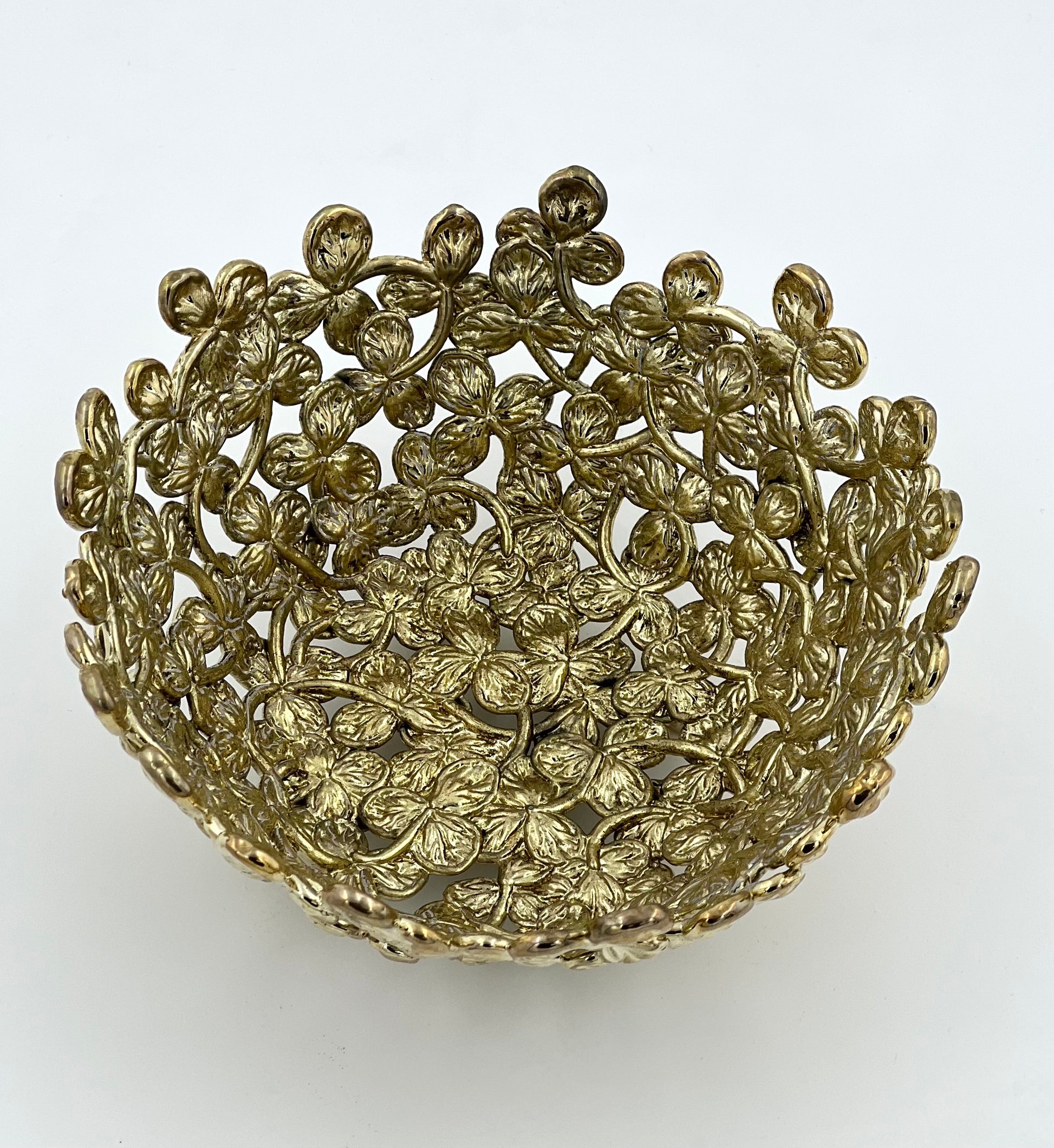 This intricately crafted electro-formed bowl features an openwork floral design, bringing timeless elegance to your space. Ideal for serving dry snacks, holding trinkets, or simply as a decorative accent.