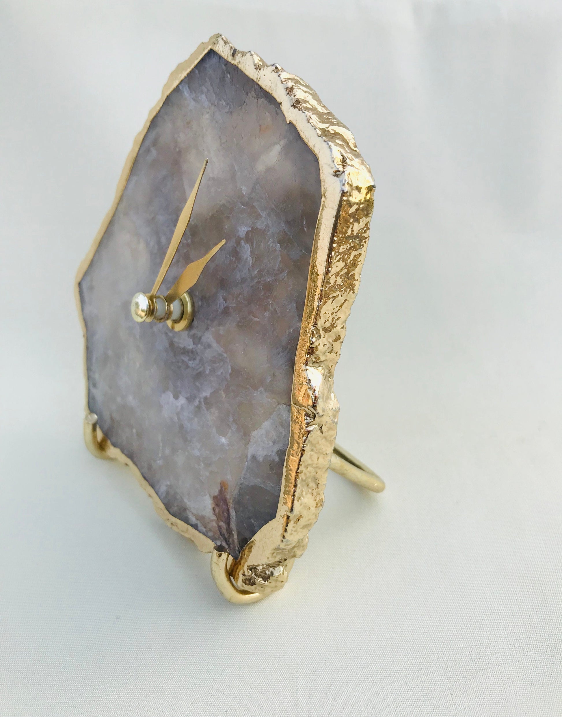 Smoky Grey Agate Desk/Wall Clock/Personalised Momento