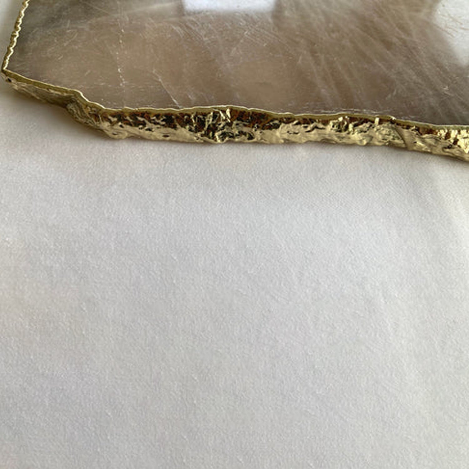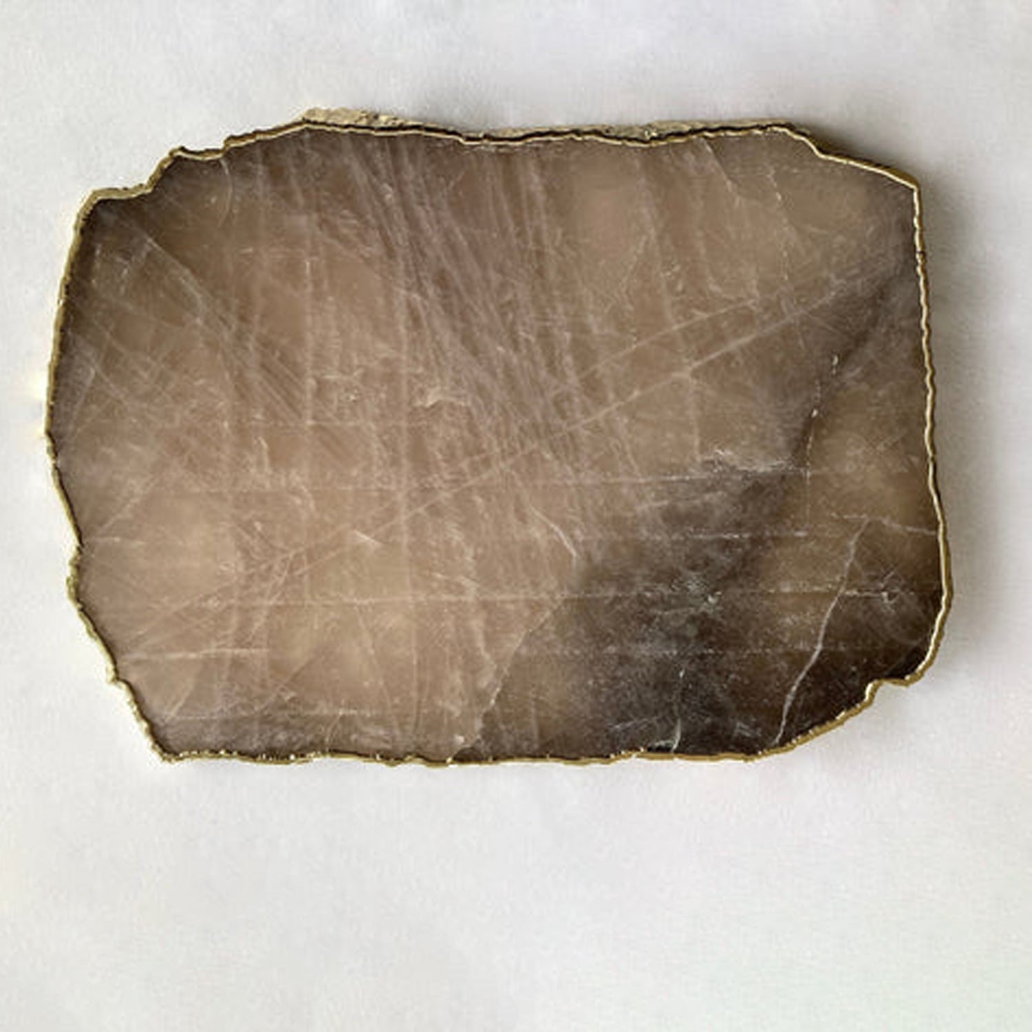 Hand hewn from natural agate and trimmed with brass plating, this incredibly ornate serving board is roomy enough for all your entertaining staples, from wine and cheese to fruit and nuts